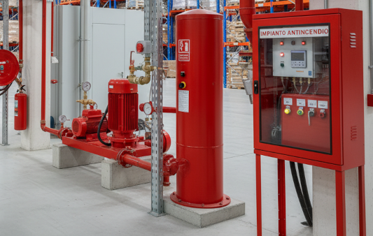 La Clima~Sud Taddeo è specializzata nella progettazione e nel montaggio di impianti antincendio industriali. Fornitura e posa in opera di apparecchiature per antincendio, tubazioni interrate e montaggio idranti. Tutti gli impianti saranno accompagnati da dichiarazione di conformità da noi rilasciata Impianti a spegnimento automatico, a sprinkler o a cassette con naspi, in conformità delle normative vigenti dei vigili del fuoco.